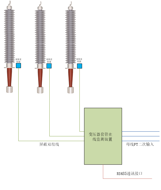 1、最多支持每台变压器六支套管(高、低压侧三相)的在线监测。
